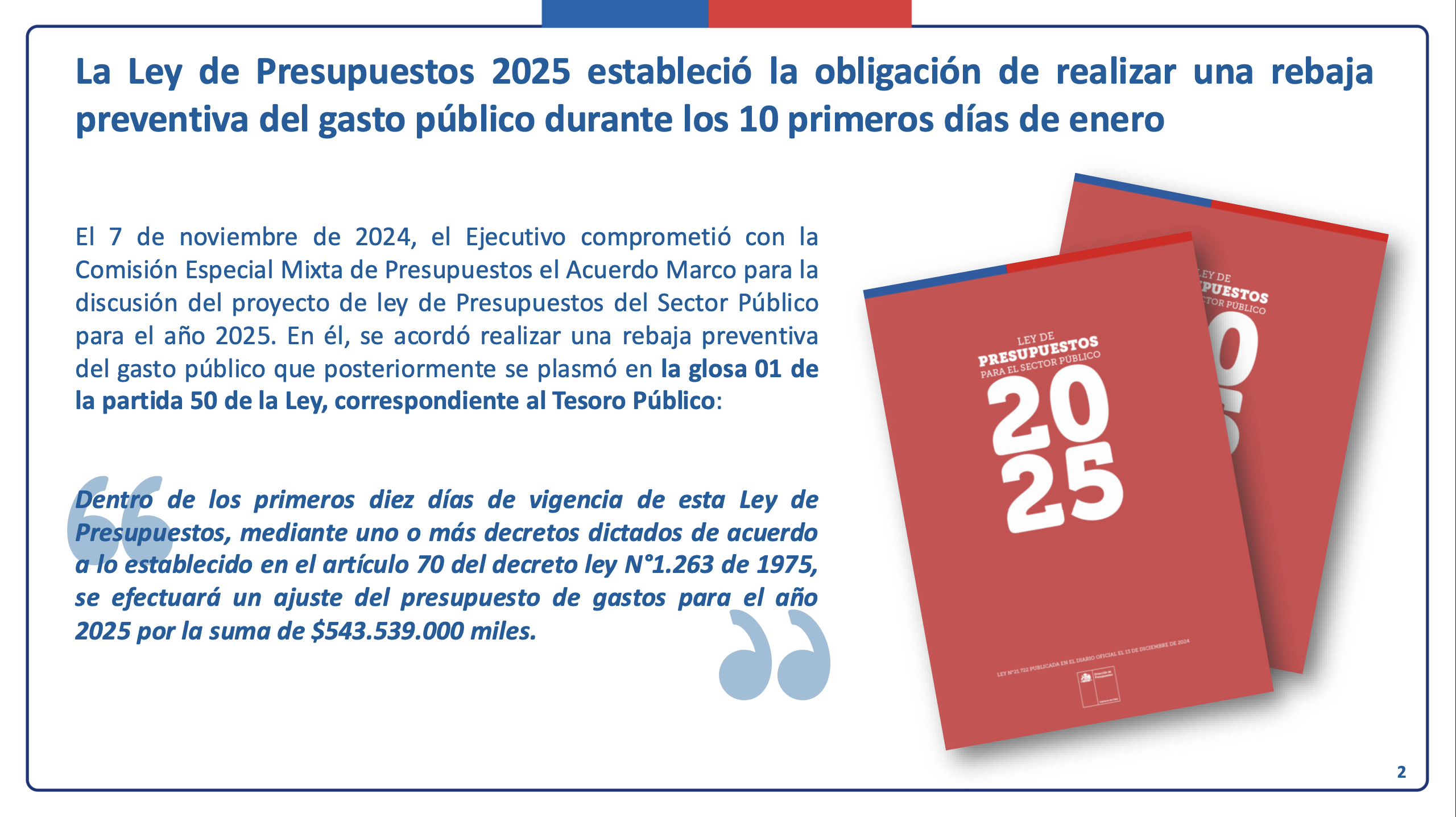 Rebaja preventiva a la Ley de Presupuestos 2025.