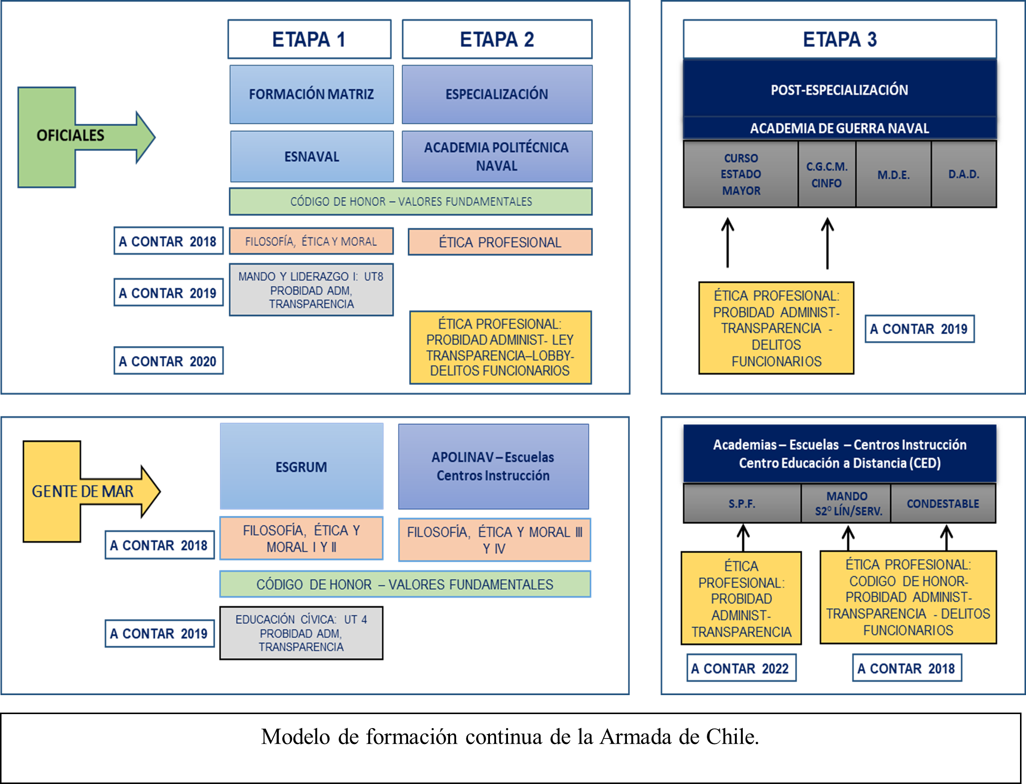 De la misma manera, desde el año 2018 se han incorporado y actualizado, dentro del modelo de formación continua y en las diferentes etapas de formación académica, elementos que tienen como finalidad fortalecer el comportamiento ético y moral del personal tanto de gente de mar como de oficiales.